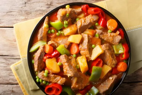 Beef Kaldereta is best served with a generous helping of steamed white rice to soak up its flavorful sauce. For extra aroma and flavor, garlic fried rice makes an excellent pairing. To cut through the stew’s richness, serve a side of pickled green papaya (atchara) or fresh cucumber salad—both add brightness and crunch. For a complete Filipino meal, enjoy it with a refreshing calamansi juice or a tall glass of iced tea.