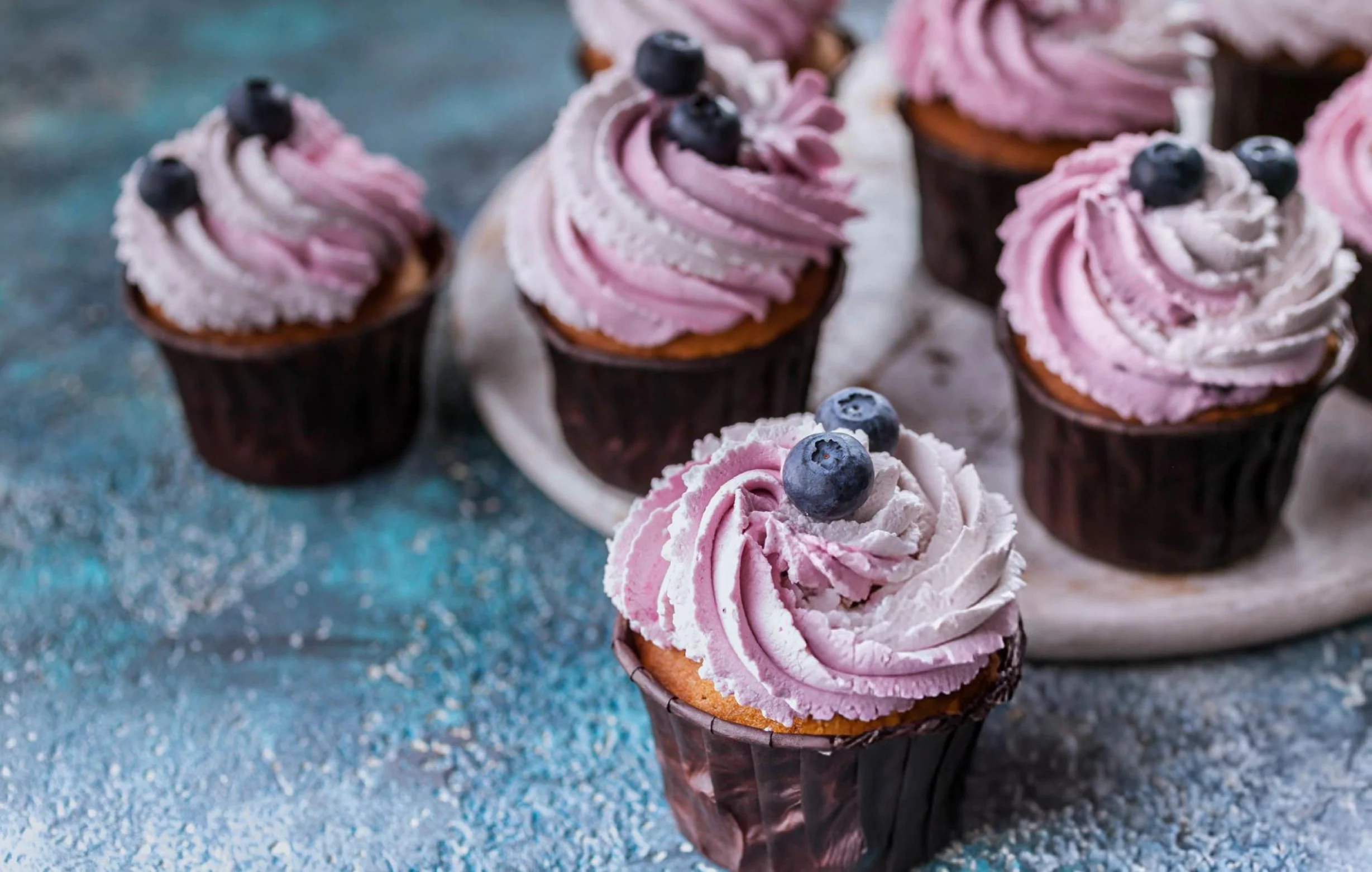 Frost the completely cooled cupcakes using a piping bag or an offset spatula, creating swirls of berry-kissed buttercream. Garnish with a fresh berry, edible flower, or a sprinkle of blueberry powder for a polished finish.
