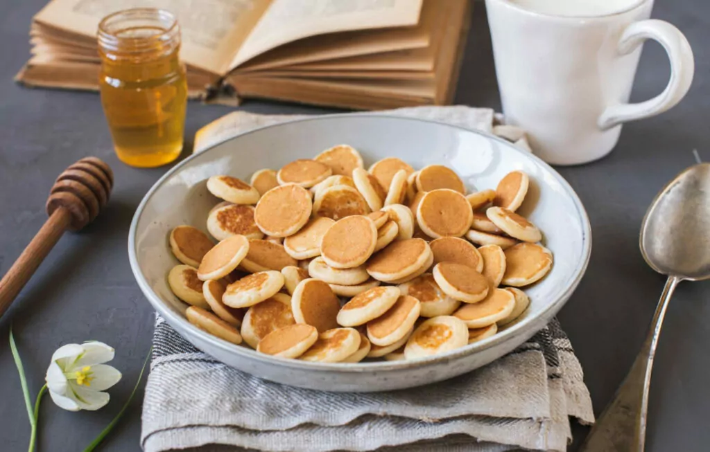 • Once fully cooked and golden, transfer the mini pancakes to a serving bowl. Enjoy with a pat of butter, a handful of fresh berries, and drizzle with maple syrup or a splash of milk for a cereal-style breakfast experience.