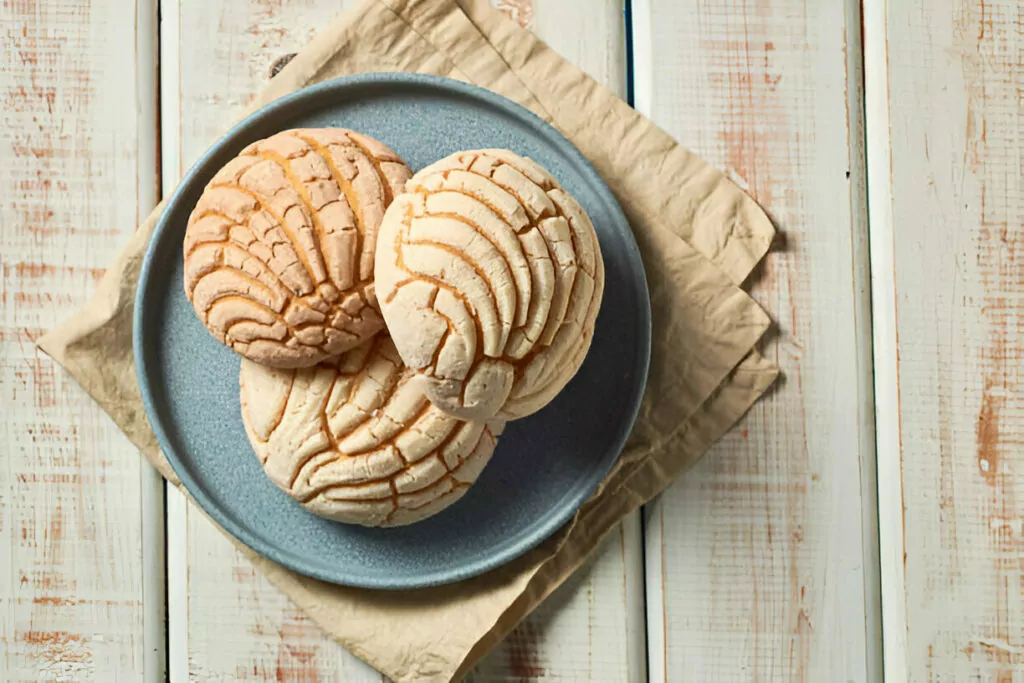As an afternoon treat, pair conchas with fresh tropical fruit, sweetened cream, or dulce de leche for contrast.