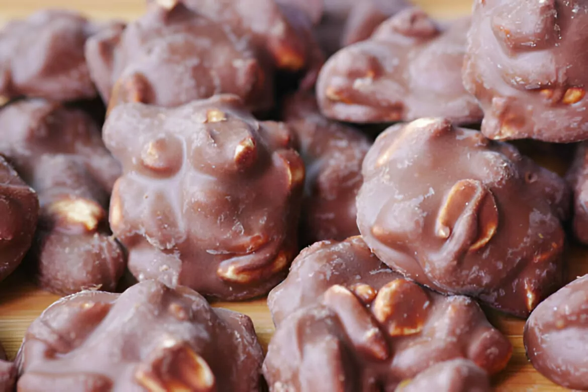 Using a cookie scoop or two spoons, drop heaping tablespoons of the candy mixture onto the prepared baking sheets. Act quickly, as the chocolate will begin to set.