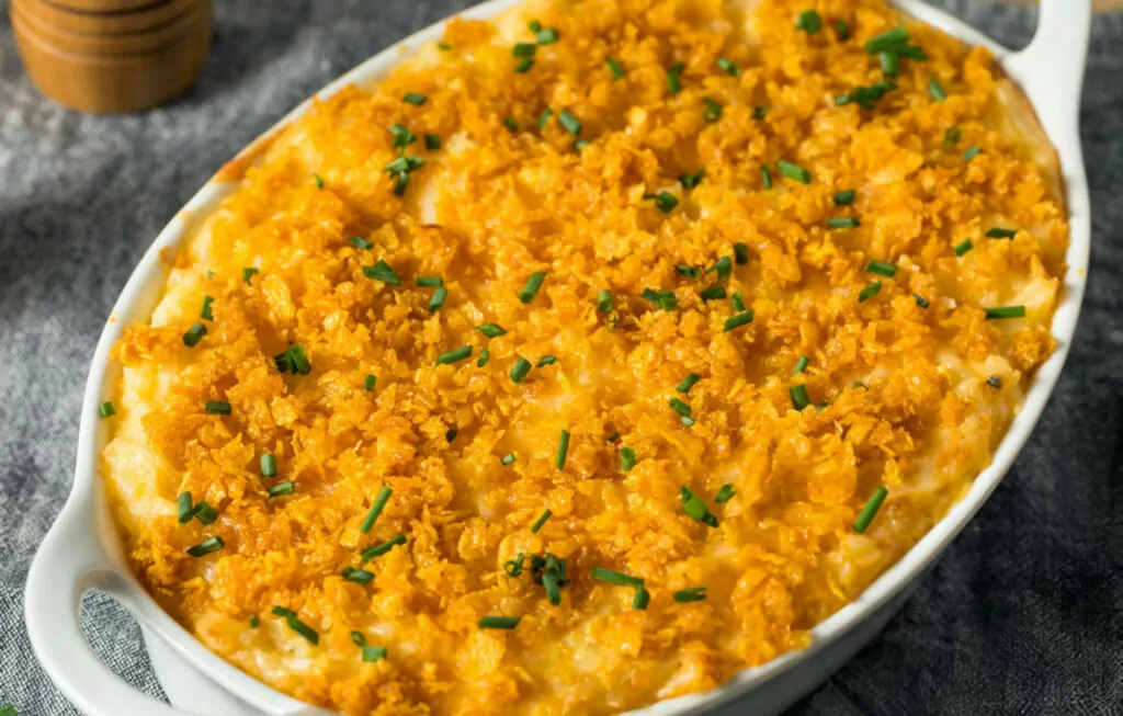 This creamy, cheesy potato casserole topped with a golden, buttery cornflake crunch is the ultimate comfort dish for family dinners and festive gatherings. Every bite is rich, warm, and irresistibly satisfying.
