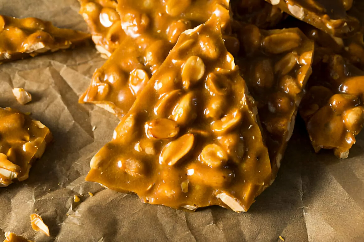 Granulated sugar and light corn syrup form the foundation of the candy, creating a golden caramel that holds the brittle together. The combination ensures the candy achieves the perfect consistency—smooth, shiny, and crisp.