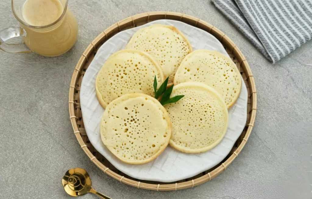 The blend of all-purpose and rice flour is key to the serabi’s signature texture. The all-purpose flour gives structure and stability, while rice flour lends a slight chewiness, resulting in a tender, slightly elastic bite that’s light but substantial.