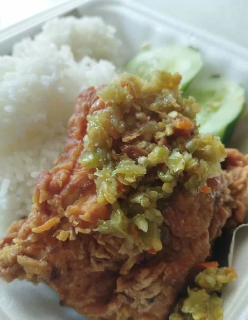 Balance the boldness of fried chicken with simple sides like steamed jasmine rice, garlic rice, or coconut rice. These starches soak up the sambal and offer a neutral canvas.