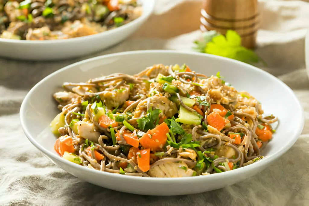 Fast, flavorful, and full of texture—this soba noodle stir-fry combines juicy bites of chicken with vibrant vegetables and a bold soy-ginger base. It’s the kind of dish you can throw together on a busy weeknight and still feel like you’re enjoying something special.