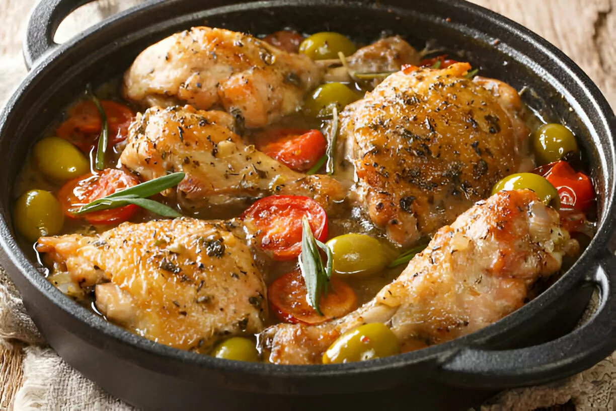 This Tuscan-inspired chicken recipe brings a comforting, rustic elegance to your table. Simmered in its own juices with aromatic vegetables, sweet cherry tomatoes, and buttery Castelvetrano olives, the dish captures the warmth of Italian countryside cooking in a single pot.