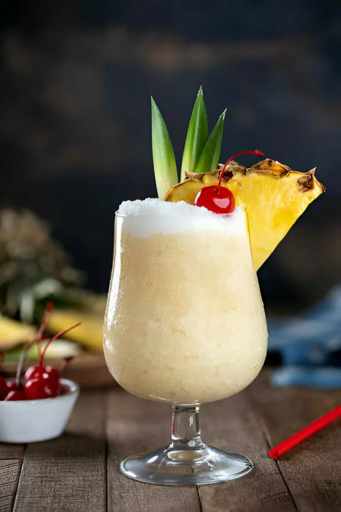 - To serve, top each glass with a fresh pineapple wedge and a glossy maraschino cherry. Add a cocktail umbrella for a festive finishing touch and serve immediately while chilled and frosty.