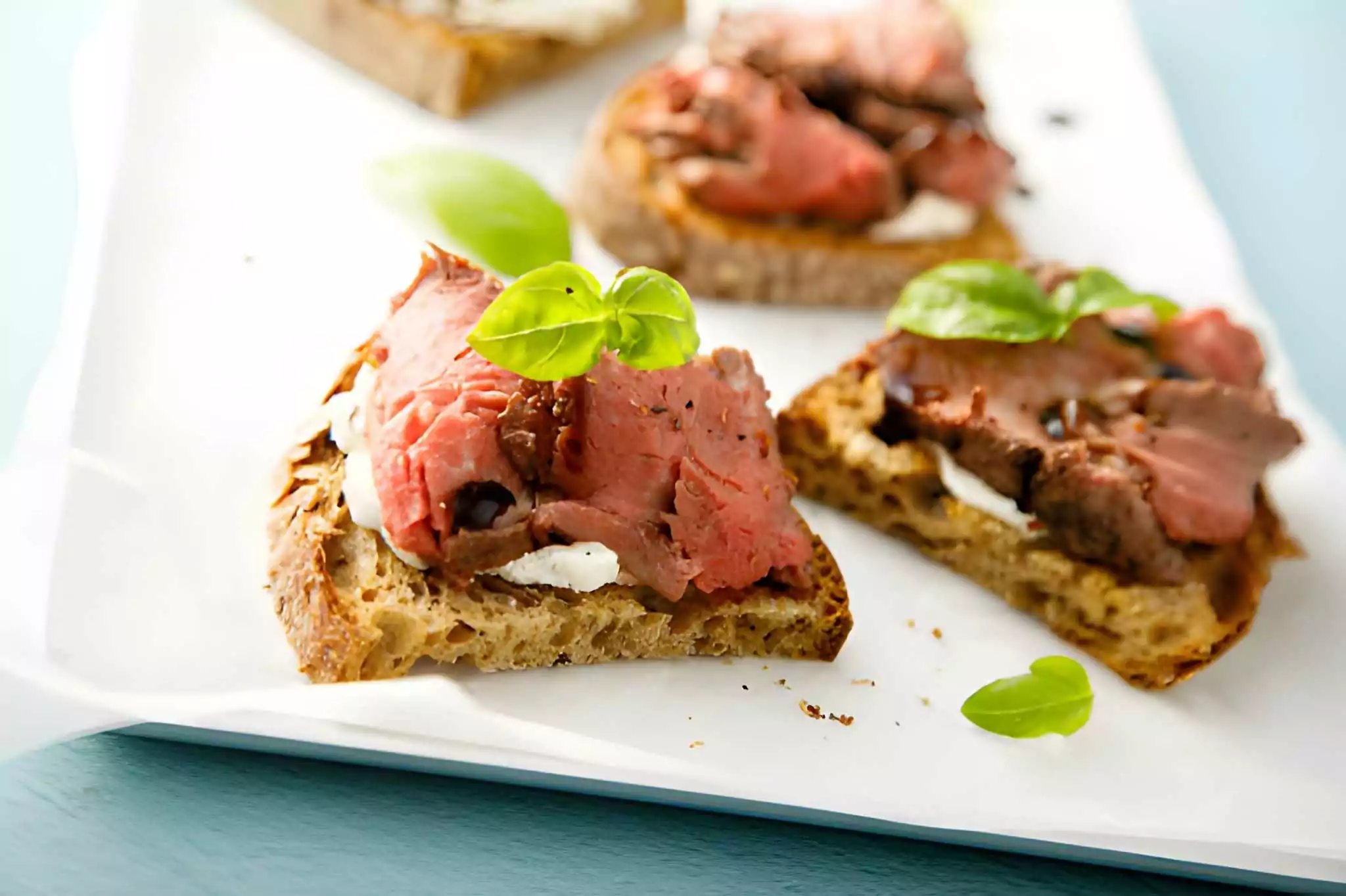 Place one or two thin slices of beef tenderloin on top of each crostini. Lightly brush the tops with a little extra olive oil to add sheen and richness, then finish with a final sprinkle of sea salt and freshly cracked black pepper to brighten the flavors.
